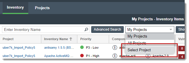- (Optional) To filter the view to a specific project, click Select Project to select a specific project.